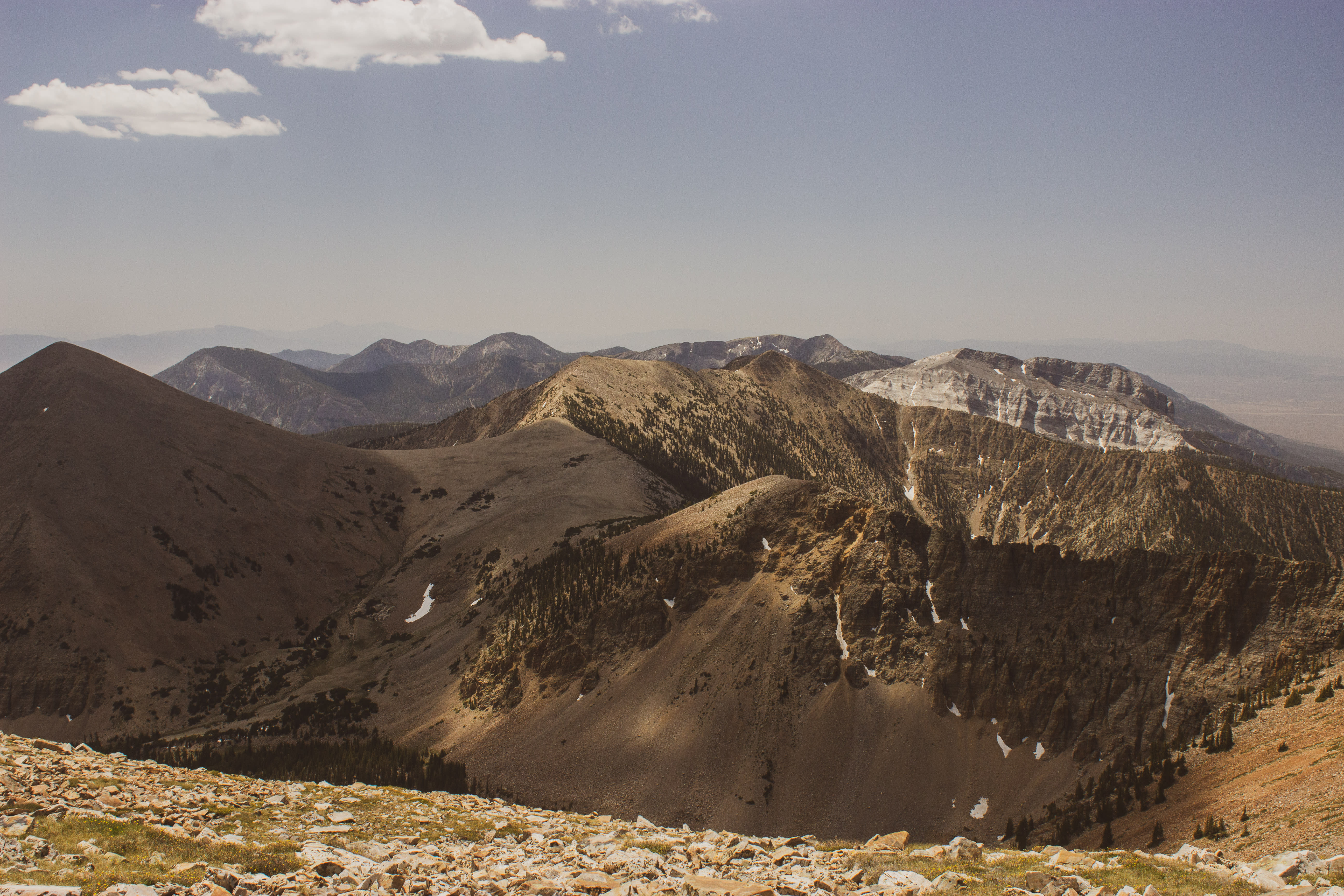 Climbing from 8,000 feet to well over 12,000, we ascended from the Great Basin’s cold desert flora––sagebrush, prickly pear, and piñon-juniper, to Sierra-esque alpine meadows teeming with wildflowers. We looked out at the highest point in Nevada and marveled further at the stark geological contrasts in the Great Basin.