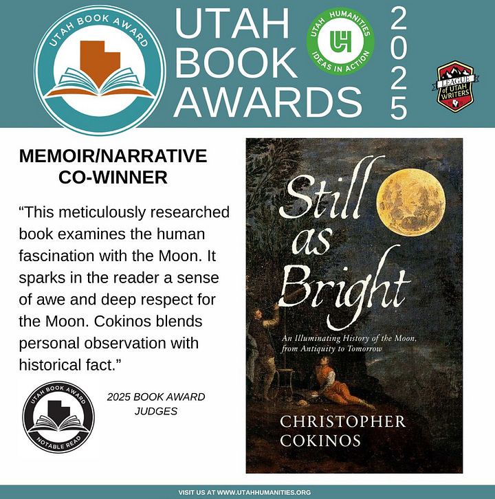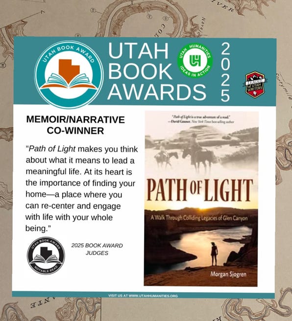 Last summer, I managed to fully log out of the interwebs for several weeks. I cannot fully commit to the same right now because of some exciting things that I get to share. Path of Light won the Utah Book Award for memoir/narrative. It is an honor to share this award with Christopher Cokinos’s Still As Bright.